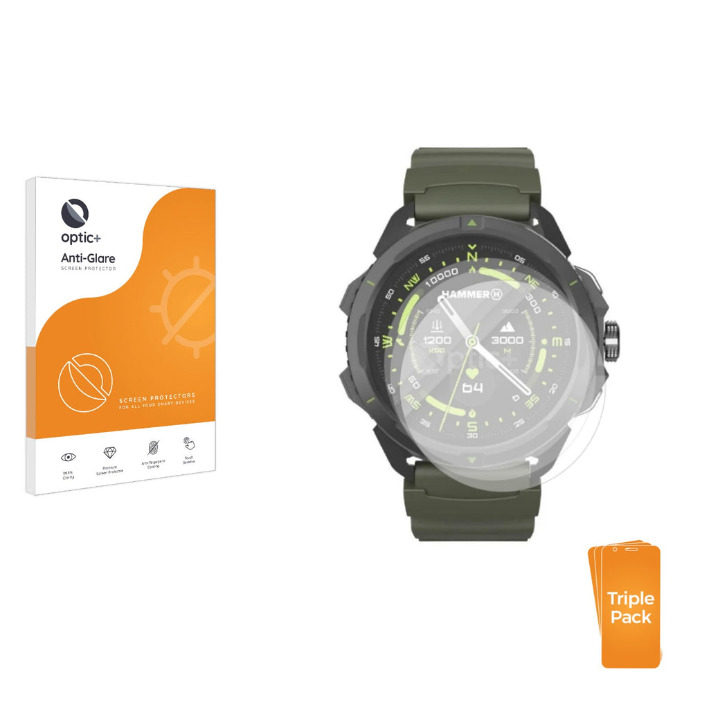 3pk Optic+ Anti-Glare Screen Protectors for Hammer Watch 2 Military Edition