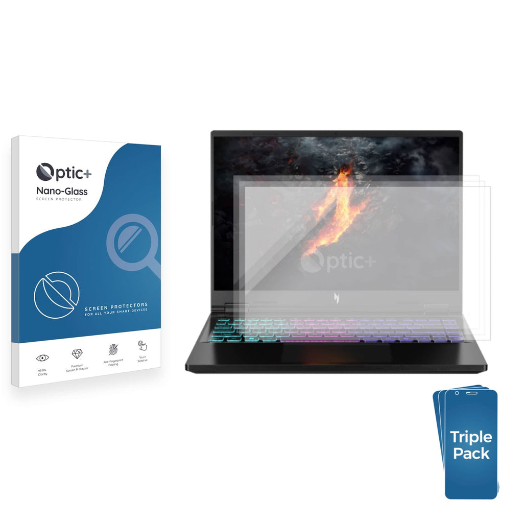 • Three Pack Optic+ Nano-Glass Screen Protectors for Acer Predator Helios Neo 14 AI
