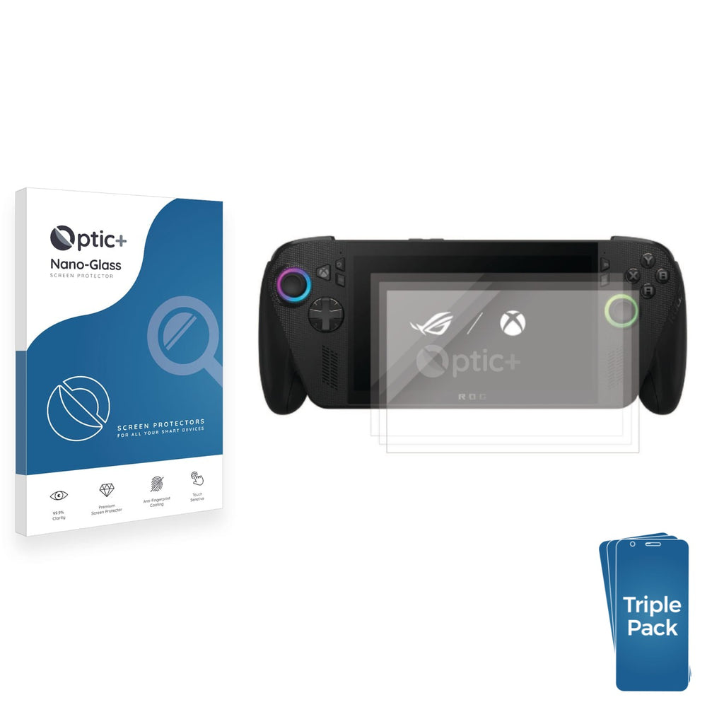 • Three Pack Optic+ Nano-Glass Screen Protectors for ASUS ROG Ally X 2025