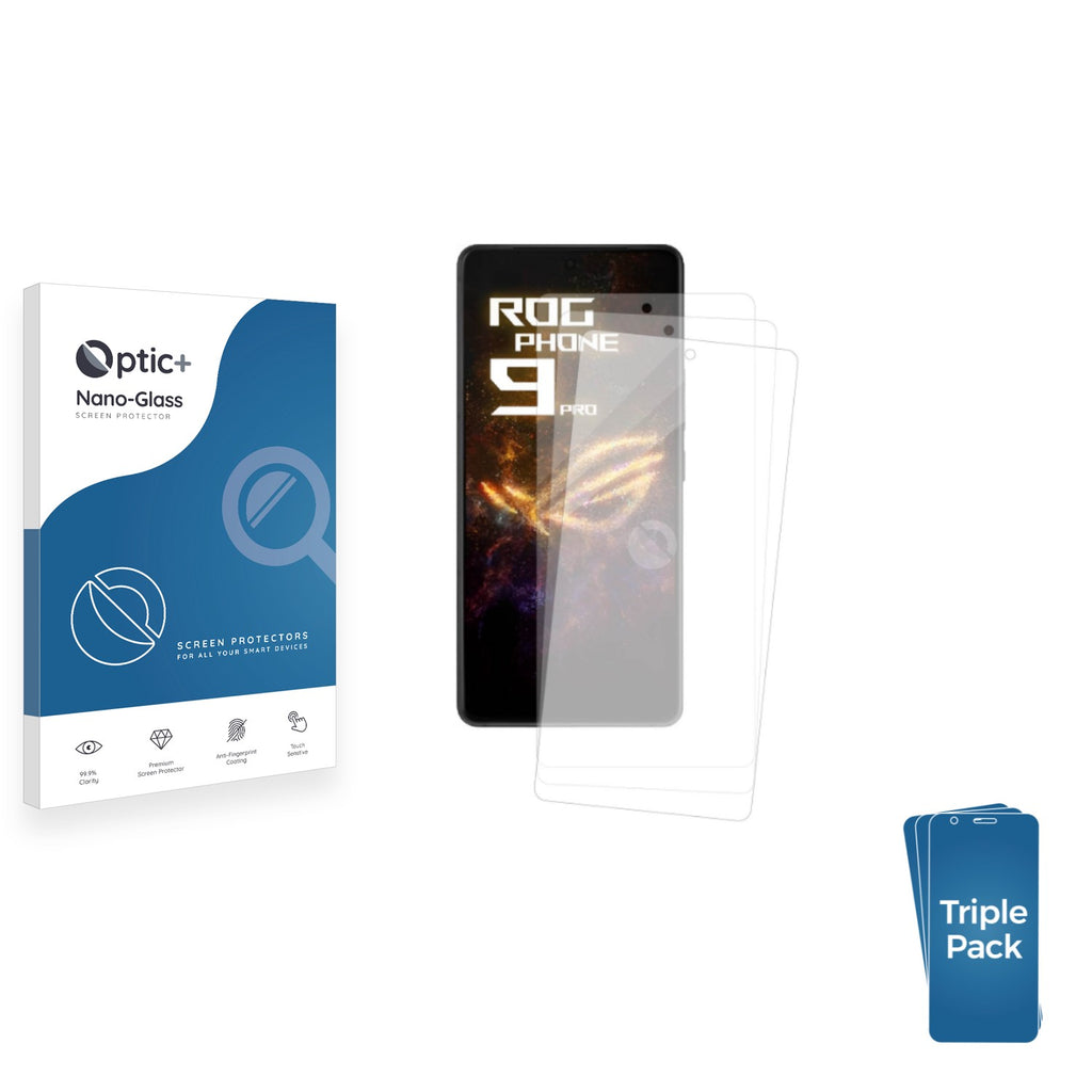 - Three Pack Optic+ Nano-Glass Screen Protectors for ASUS ROG Phone 9 Pro Edition