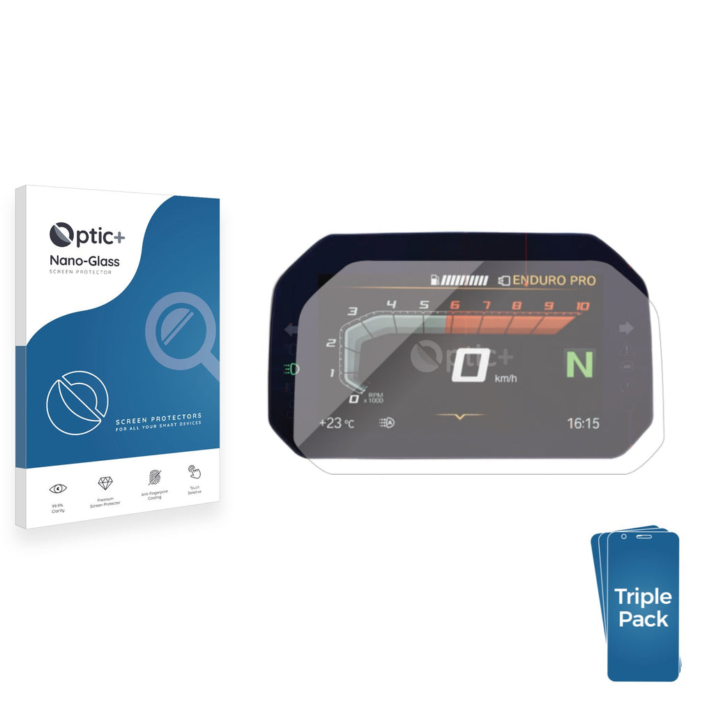 - Three Pack Optic+ Nano-Glass Screen Protectors for BMW R 1250 RS 2019-2024 Connectivity TFT 6.5