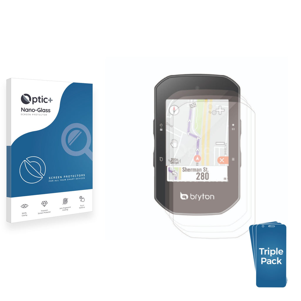 - Three Pack Optic+ Nano-Glass Screen Protectors for Bryton Rider 550
