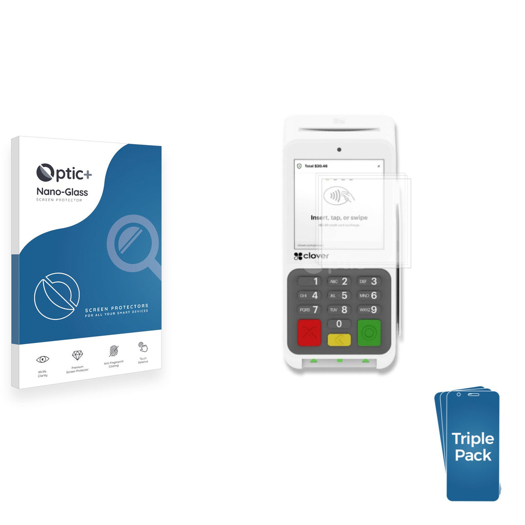 • Three Pack Optic+ Nano-Glass Screen Protectors for Clover Compact