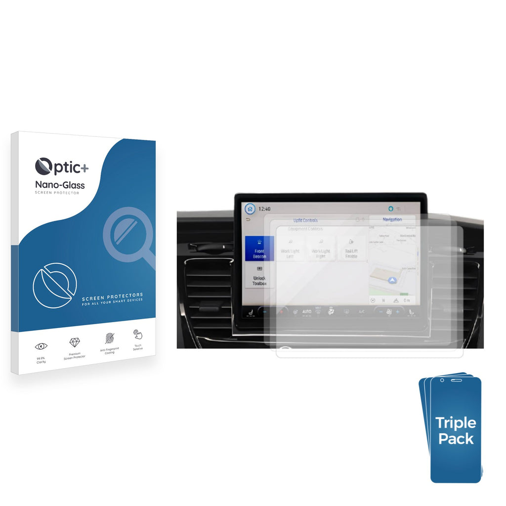 • Three Pack Optic+ Nano-Glass Screen Protectors for Ford Transit 2025 Infotainment System 12"