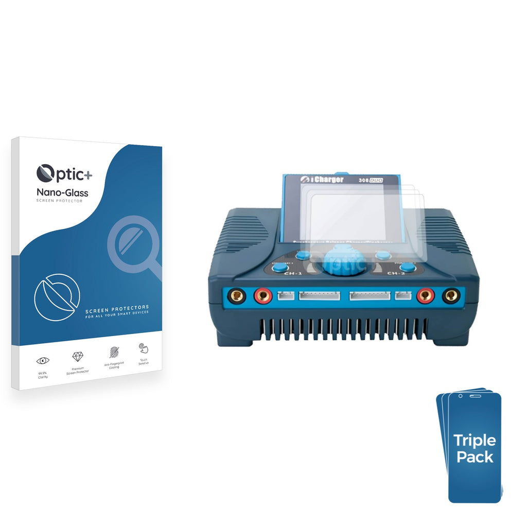 - Three Pack Optic+ Nano-Glass Screen Protectors for Junsi iCharger 308 Duo