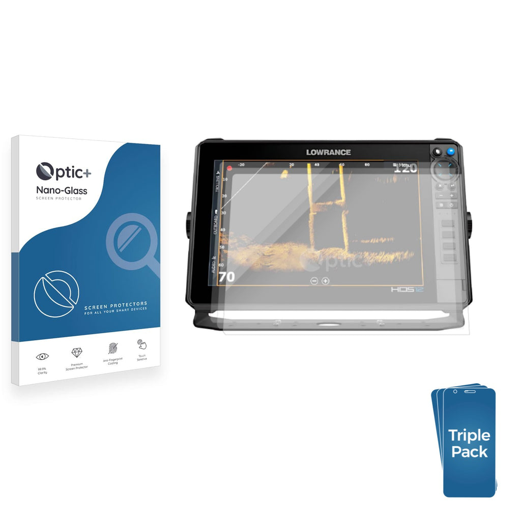 - Three Pack Optic+ Nano-Glass Screen Protectors for Lowrance HDS-12 Pro