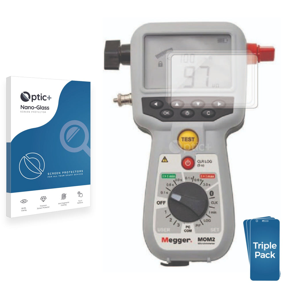 - Three Pack Optic+ Nano-Glass Screen Protectors for Megger MOM2