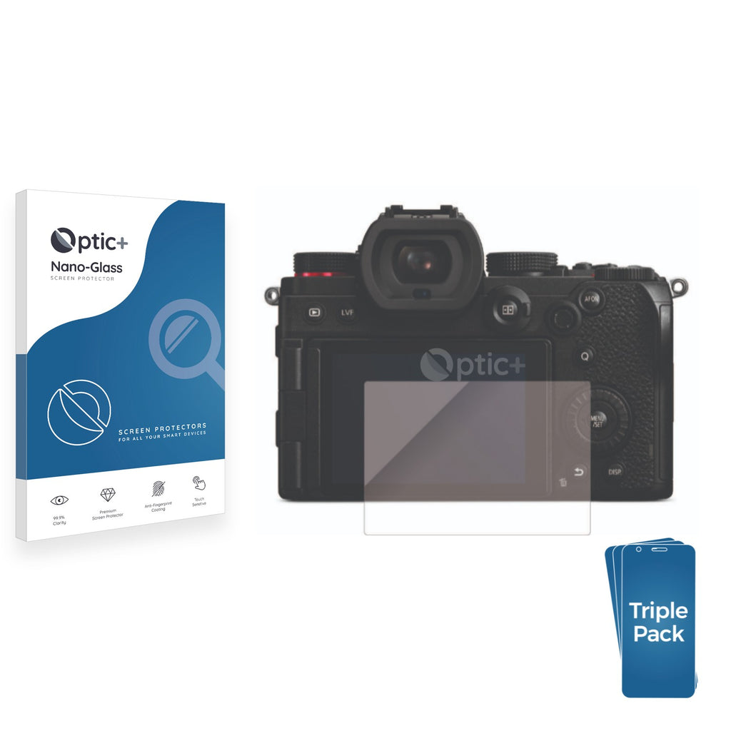 • Three Pack Optic+ Nano-Glass Screen Protectors for Panasonic Lumix DC-S5