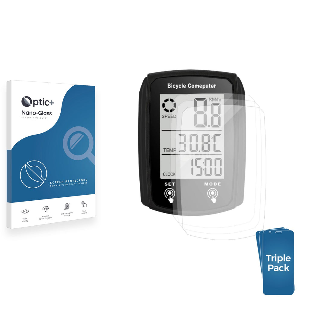 • Three Pack Optic+ Nano-Glass Screen Protectors for Samuliy Bike computer