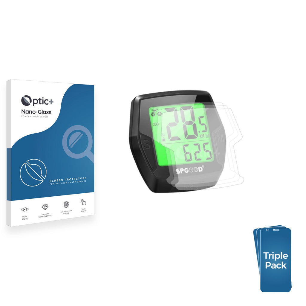 • Three Pack Optic+ Nano-Glass Screen Protectors for SPGOOD Fahrradcomputer 1.7