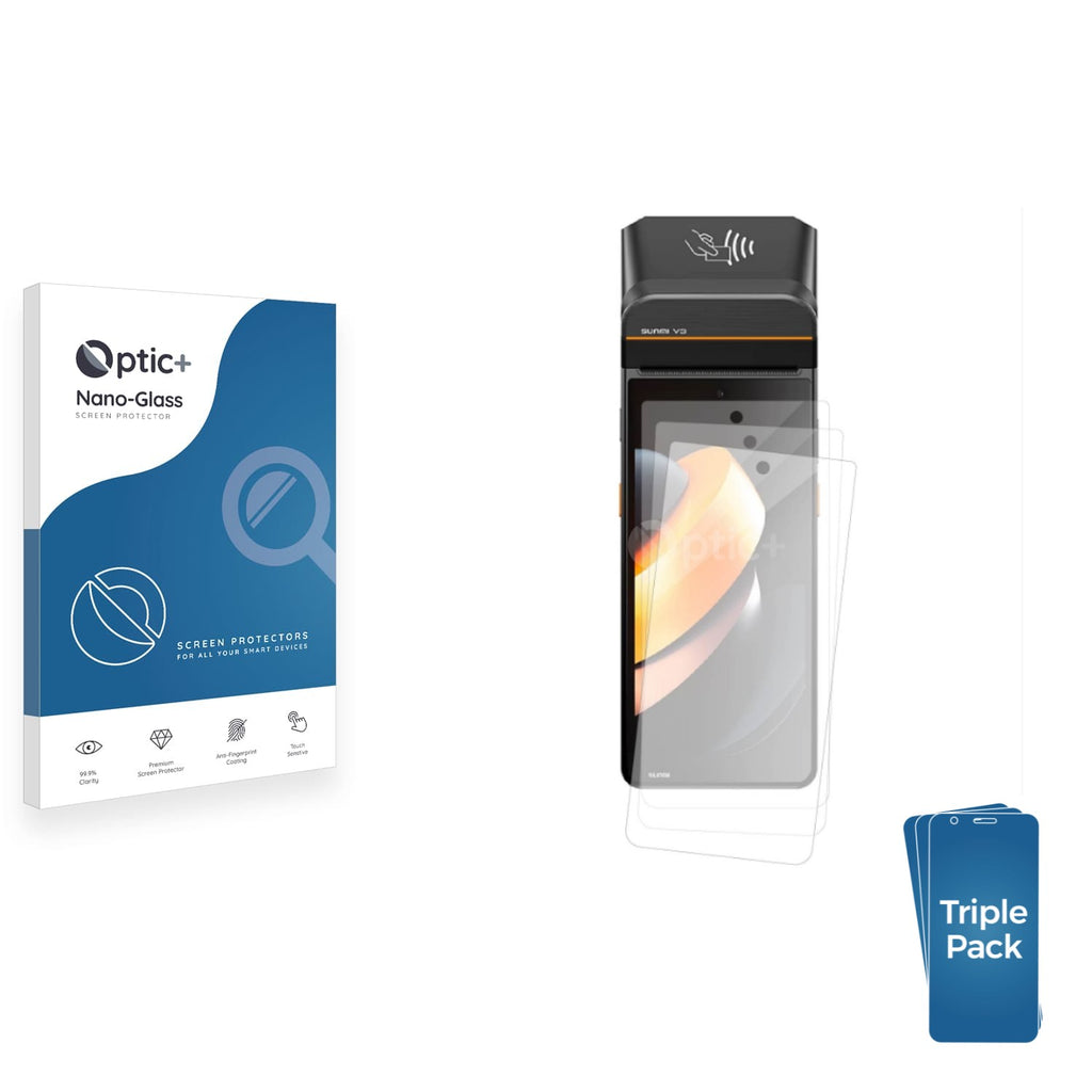 • Three Pack Optic+ Nano-Glass Screen Protectors for Sunmi V3H