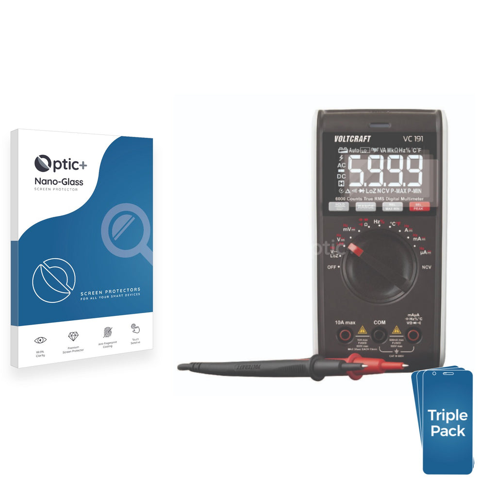 • Three Pack Optic+ Nano-Glass Screen Protectors for Voltcraft VC191