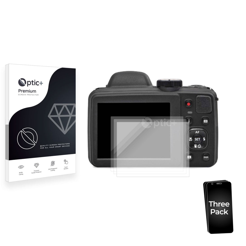 • Three Optic+ Premium Film Screen Protectors for Kodak Pixpro AZ405
