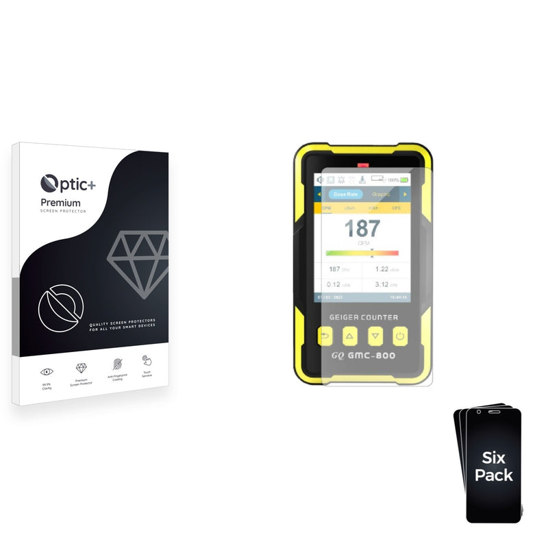 - Six Optic+ Premium Film Screen Protectors for GQ Electronics GMC-800 Geiger Counter
