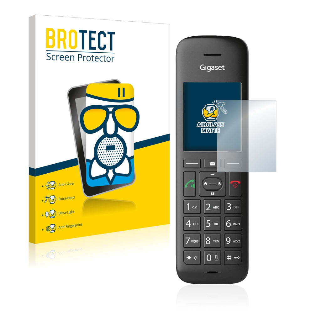 Matte Finish, Anti-Glare Screen Protector. Thin, light and super-strong, this anti-glare screen protector is the ultimate companion for your device. Its Ultra-Light properties and High-Transparency ensure you have a clear, unobstructed and sharp view of the display, while maintaining touch-screen and multi-touch sensitivity. The surface of the glass screen protector is matte and therefore reduces annoying reflections on your display, while providing a unique touch-screen sensitivity. An additional Anti-Fingerprint layer helps prevent dirt and fingerprint smears. The adhesive layer ensures that the screen protector glides smoothly and effortlessly onto your Gigaset C570HX for a bubble-free, easy installation. Please note: Because of the curved edges of some displays, some of our protectors are cut deliberately slightly smaller than the display.