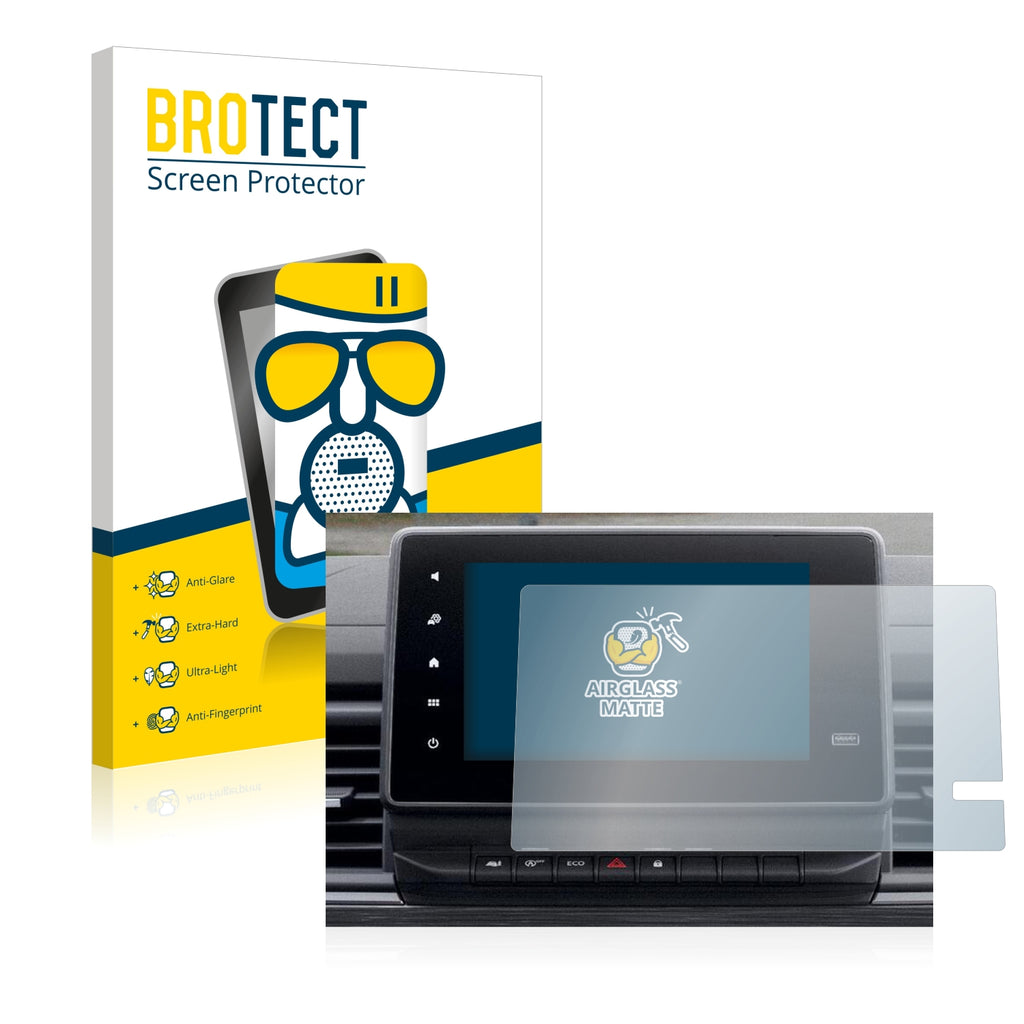 Matte Finish, Anti-Glare Screen Protector. Thin, light and super-strong, this anti-glare screen protector is the ultimate companion for your device. Its Ultra-Light properties and High-Transparency ensure you have a clear, unobstructed and sharp view of the display, while maintaining touch-screen and multi-touch sensitivity. The surface of the glass screen protector is matte and therefore reduces annoying reflections on your display, while providing a unique touch-screen sensitivity. An additional Anti-Fingerprint layer helps prevent dirt and fingerprint smears. The adhesive layer ensures that the screen protector glides smoothly and effortlessly onto your Renault Trafic 2021 Easy Link 8 for a bubble-free, easy installation. Please note: Because of the curved edges of some displays, some of our protectors are cut deliberately slightly smaller than the display.Ships With: