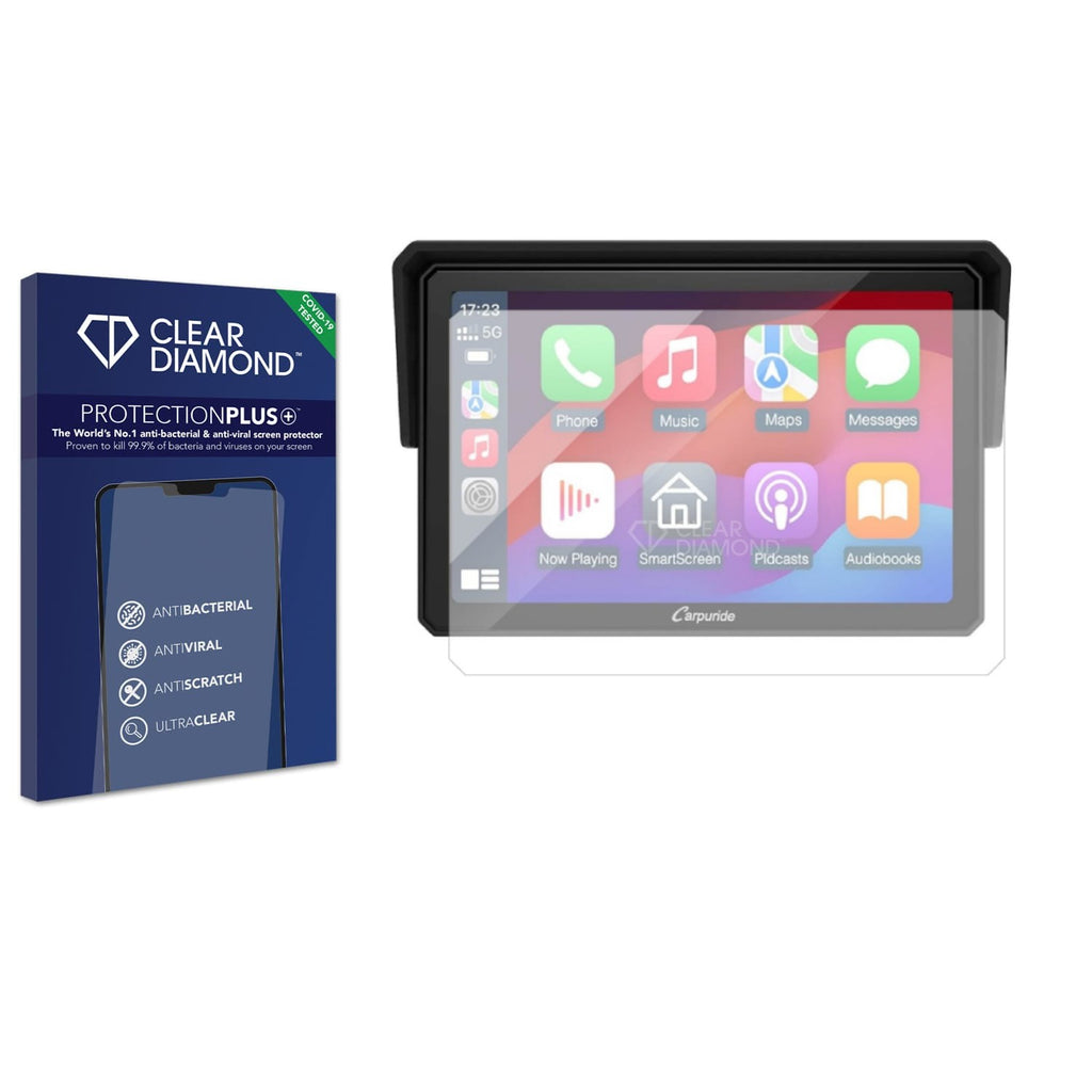 The Clear Diamond Screen Protection film for Carpuride W502BS Pro 5 is easy to install and provides anti-bacterial, anti-viral and anti-scratch protection for your touchscreen with a crystal-clear finish. Display Protection is key to maintaining a touchscreens integrity and the patented Protection Plus+ anti-bacterial hard-coat layer in Clear Diamond Screen Protection Films enables you to protect your screen and yourself.