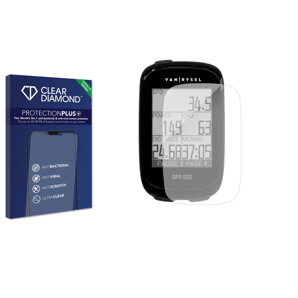 The Clear Diamond Screen Protection film for Decathlon Van Rysel GPS 500 is easy to install and provides anti-bacterial, anti-viral and anti-scratch protection for your touchscreen with a crystal-clear finish. Display Protection is key to maintaining a touchscreens integrity and the patented Protection Plus+ anti-bacterial hard-coat layer in Clear Diamond Screen Protection Films enables you to protect your screen and yourself.