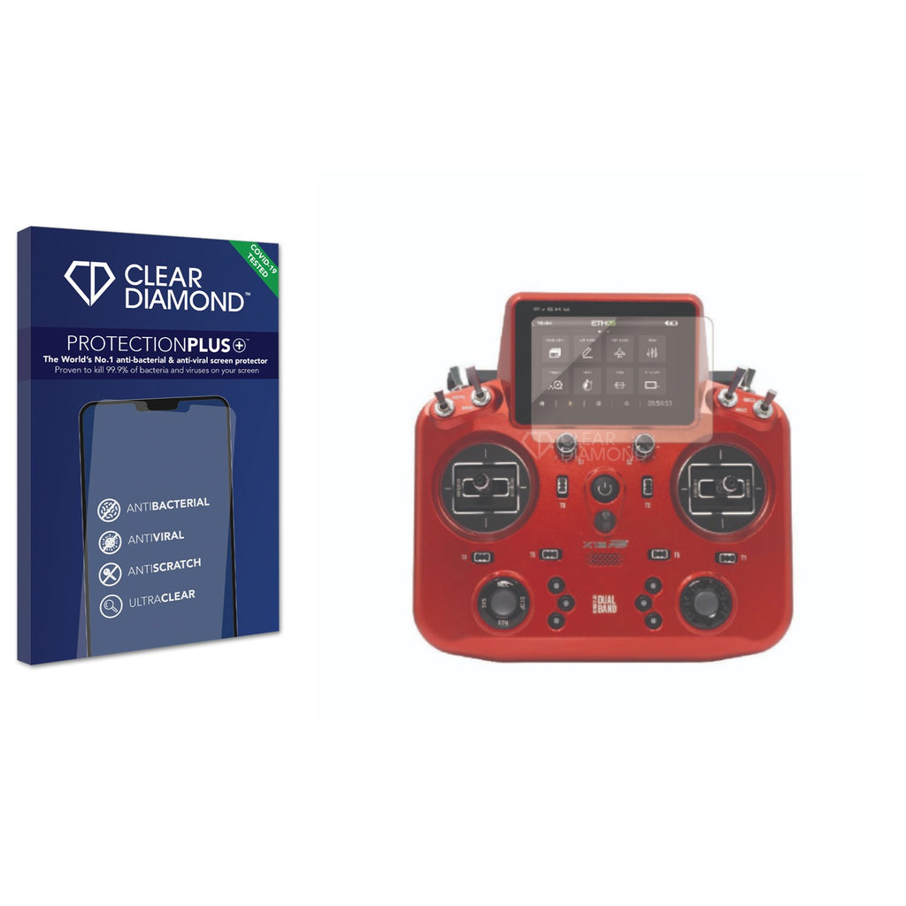 The Clear Diamond Screen Protection film for FrSky Tandem X18RS is easy to install and provides anti-bacterial, anti-viral and anti-scratch protection for your touchscreen with a crystal-clear finish. Display Protection is key to maintaining a touchscreens integrity and the patented Protection Plus+ anti-bacterial hard-coat layer in Clear Diamond Screen Protection Films enables you to protect your screen and yourself.