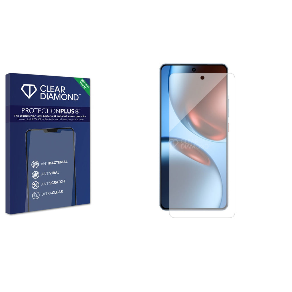 How it worksClear Diamond Anti-Viral films are the only screen protectors to have achieved the world’s top three certifications including ISO 21702, the CE Mark in Europe, and FDA approval in the U.S. Clear Diamond Anti-Viral films are scientifically proven to be the most effective within the industry. Clear Diamond Anti-Viral films neutralise 99.24% of viruses including the Coronavirus within 30 minutes and kills 99+% of bacteria within 10 minutes. Silver-ion-mediated reactive oxygen species (ROS) generation, in the hardcoat, promotes virucidal & bactericidal activity.