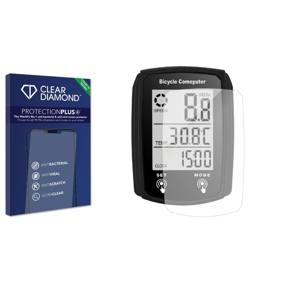 The Clear Diamond Screen Protection film for Samuliy Bike computer is easy to install and provides anti-bacterial, anti-viral and anti-scratch protection for your touchscreen with a crystal-clear finish. Display Protection is key to maintaining a touchscreens integrity and the patented Protection Plus+ anti-bacterial hard-coat layer in Clear Diamond Screen Protection Films enables you to protect your screen and yourself.