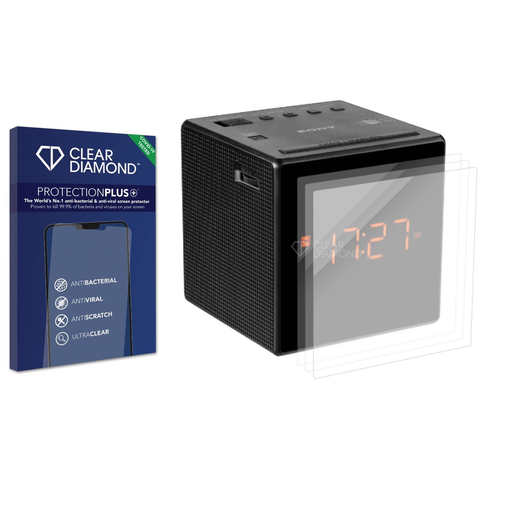 The Clear Diamond Screen Protection film for Sony ICF-C1 is easy to install and provides anti-bacterial, anti-viral and anti-scratch protection for your touchscreen with a crystal-clear finish. Display Protection is key to maintaining a touchscreens integrity and the patented Protection Plus+ anti-bacterial hard-coat layer in Clear Diamond Screen Protection Films enables you to protect your screen and yourself.