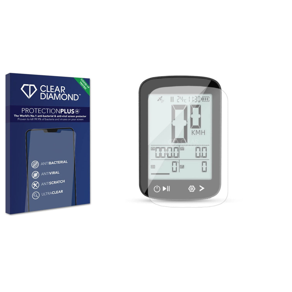 The Clear Diamond Screen Protection film for yongness Bike Computer is easy to install and provides anti-bacterial, anti-viral and anti-scratch protection for your touchscreen with a crystal-clear finish. Display Protection is key to maintaining a touchscreens integrity and the patented Protection Plus+ anti-bacterial hard-coat layer in Clear Diamond Screen Protection Films enables you to protect your screen and yourself.