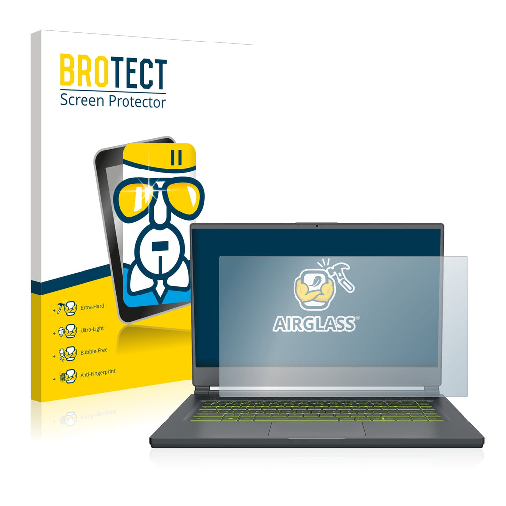 Nano Glass AirGlass, exclusively offered by BROTECT It's 2x thinner and lighter than tempered glass protectors and more flexible than all other glass protectors on the market, while still offering super strong anti-scratch hardness of thicker tempered screen protectors. Its Ultra-Light properties and High-Transparency ensure you have a clear, unobstructed, sharp view of the display, while maintaining touch-screen and multi-touch sensitivity. An additional Anti-Fingerprint layer helps prevent dirt and fingerprint smears. The adhesive layer ensures that the screen protector glides smoothly and effortlessly onto your MSI Delta 15 for a bubble-free, easy installation. Please note: Because of the curved edges of some displays, some of our protectors are cut deliberately slightly smaller than the display.Ships with: