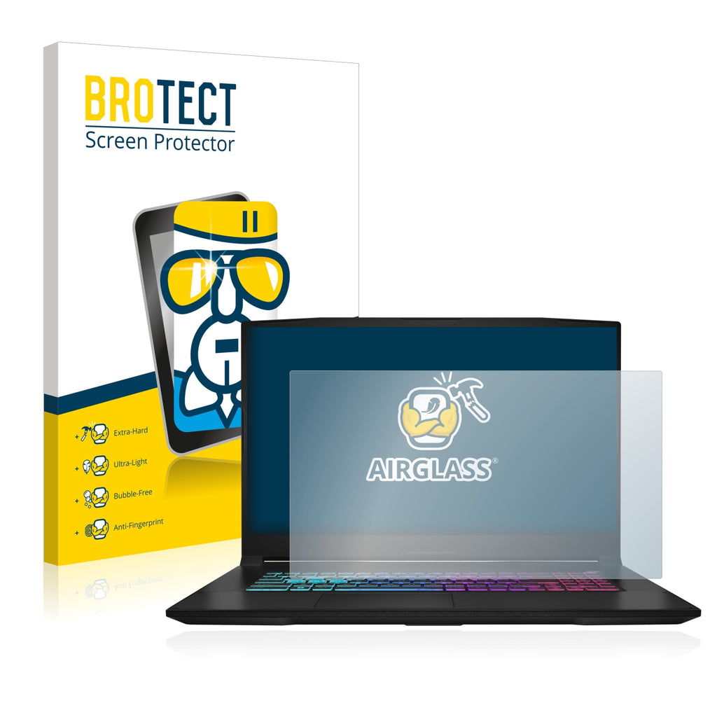 Nano Glass AirGlass, exclusively offered by BROTECT It's 2x thinner and lighter than tempered glass protectors and more flexible than all other glass protectors on the market, while still offering super strong anti-scratch hardness of thicker tempered screen protectors. Its Ultra-Light properties and High-Transparency ensure you have a clear, unobstructed, sharp view of the display, while maintaining touch-screen and multi-touch sensitivity. An additional Anti-Fingerprint layer helps prevent dirt and fingerprint smears. The adhesive layer ensures that the screen protector glides smoothly and effortlessly onto your MSI Katana 17 B13V for a bubble-free, easy installation. Please note: Because of the curved edges of some displays, some of our protectors are cut deliberately slightly smaller than the display.Ships with: